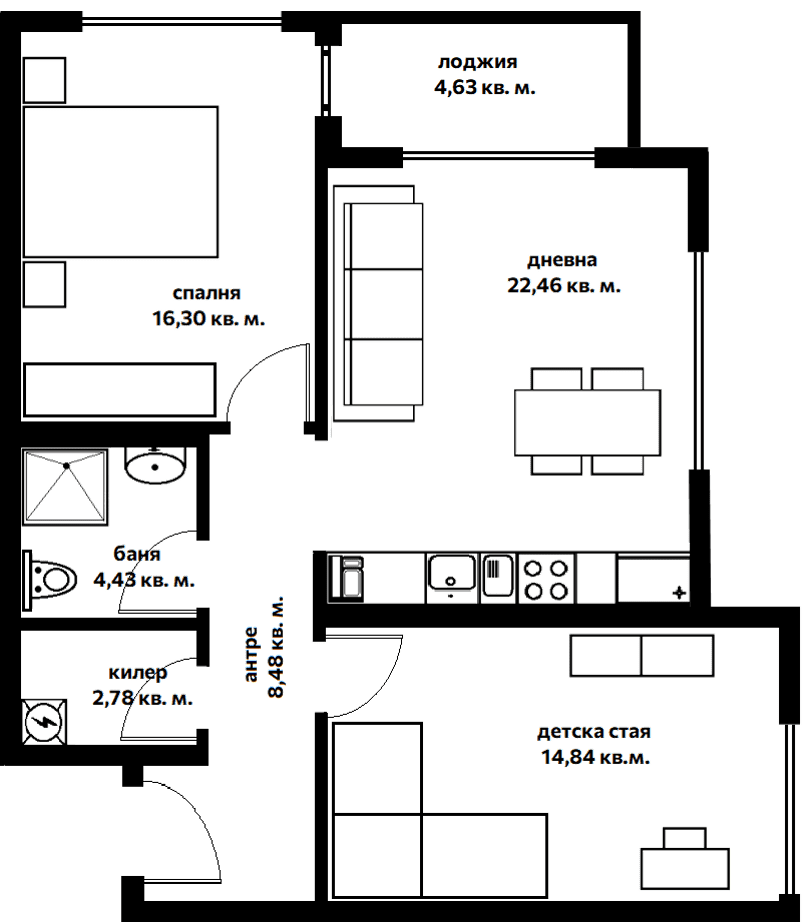 За платно избрах тристаен апартамент с обща чиста жилищна площ почти 74 кв. метра.
