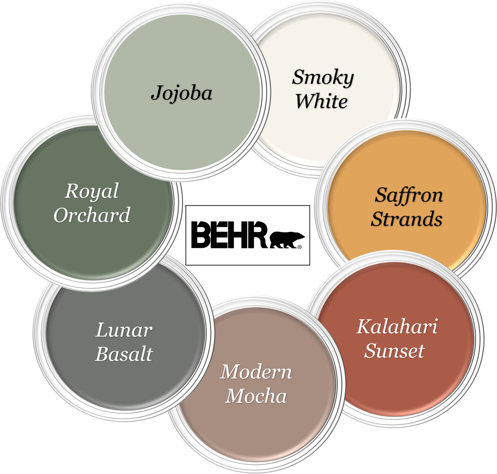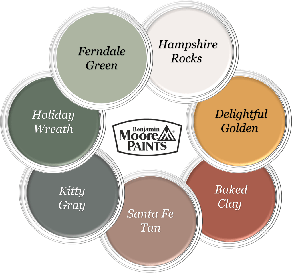 Основният цвят в палитрата, която избрах, е дафиново зеленото. Автентичният лавров венец, символ на триумф в Древен Рим, се прави от клони и листа на дафиновото дърво, вид вечнозелен храст. Подобен цвят интериорни бои са „Jojoba“ на Бер и „Ferndale Green“ на Бенджамин Мур. Таванът във всички помещения, освен в банята, боядисах в много тъмен нюанс на зеленото като „Lunar Basalt“ на Бер или „Kitty Gray“ на Бенджамин Мур. Допълних палитрата с мебели и текстил в бежови и телесни тонове, и тъмномаслиново зелен цвят, а за акцентен тон използвах жълто в цвят златна жътва. За външните стени и колоните използвах нюанс на охрата като „Kalahari Sunset“ на Бер или „Baked Clay“ на Бенджамин Мур.