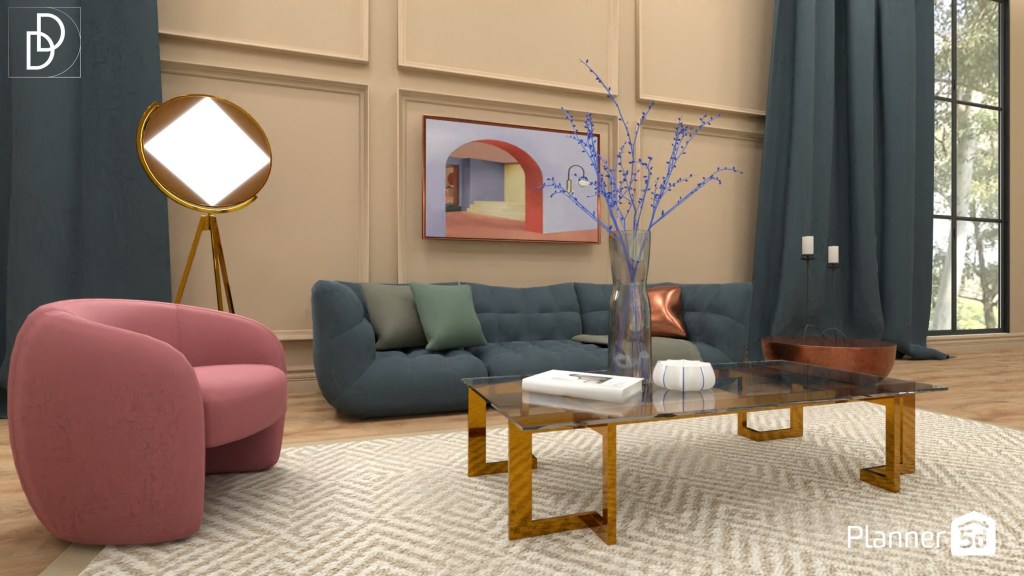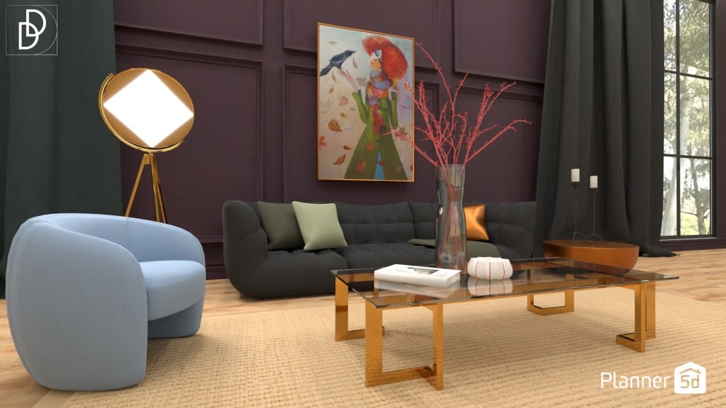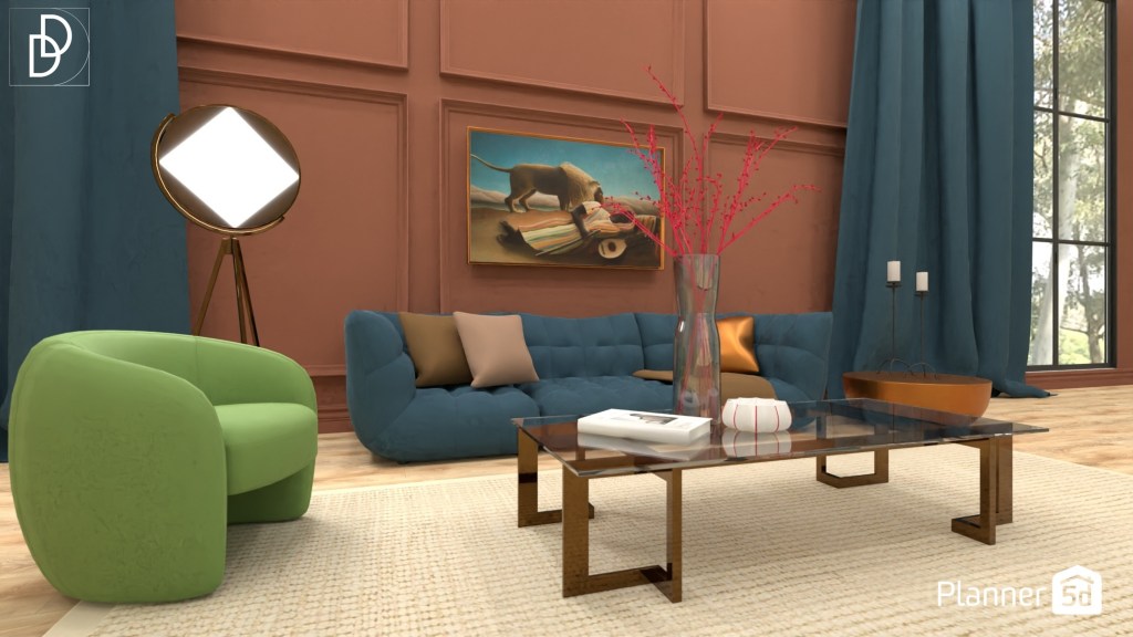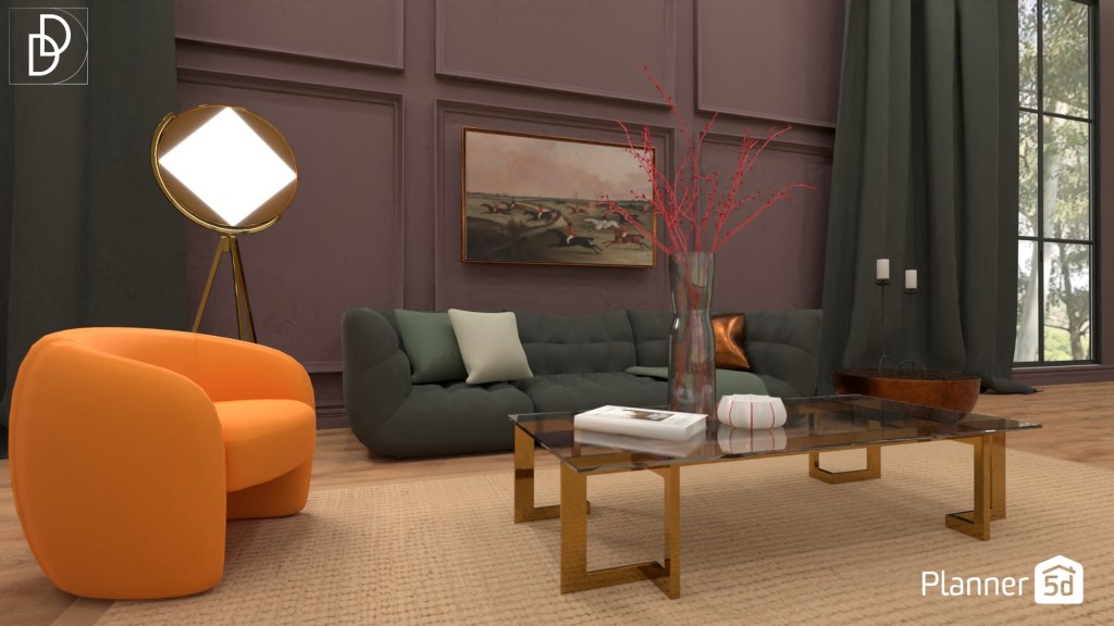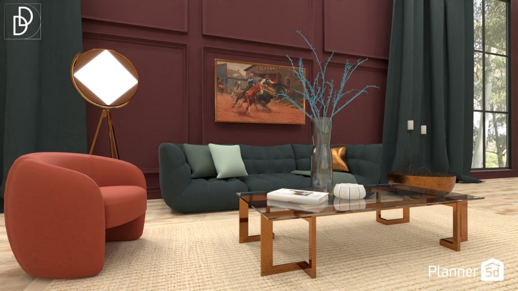 В примерния проект по-горе, избрах да комбинирам „Rumors“ с „Thermal“ и комбинацията се оказа наистина драматична и увлекателна, както и много сгряваща. Добавих и щипка ръждиво оранжево в цвета на фотьойла за повече енергия в дизайна.